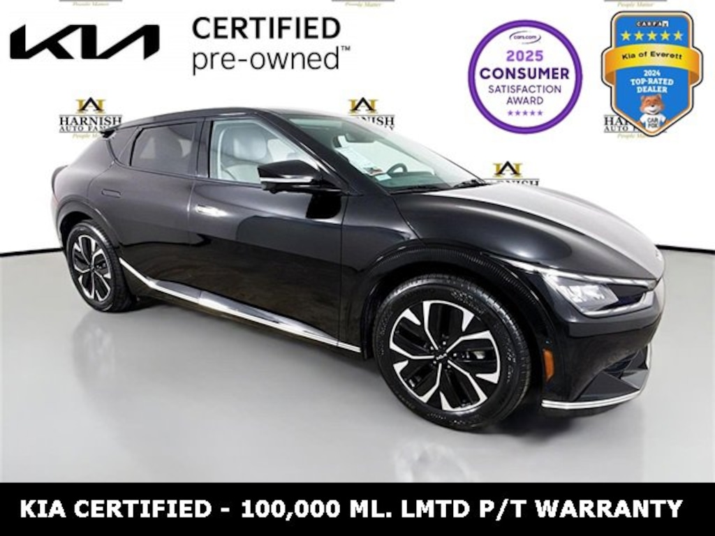 *RECENT ARRIVAL, *KIA FACTORY CERTIFIED*, *LOW MILES, *ALL WHEEL DRIVE, *TECH PKG., *COLLISION AVAOIDANCE SYSTEM, *CONCERT-LIKE SOUND SYSTEM, *LEATHER, *POWER LIFTGATE, *HEATED AND COOLED SEATS, *HEATED STEERING WHEEL, *APPLE CARPLAY, *NAVIGATION, EV6 Wind, Kia Certified Pre-Owned Certified, Electric Motor, 1-Speed Automatic, AWD, Aurora Black Pearl, Charcoal/Misty Gray Leather, 14 Speakers, Apple CarPlay & Android Auto, Blind-Spot View Monitor, Navigation system: AVN 5.0 Navigation System, Power Liftgate, Rain sensing wipers, Remote Smart Parking Assist, Reverse Parking Collision-Avoidance Assist, Surround View Monitor, Wind Technology Package, 4-Wheel Disc Brakes, ABS brakes, Air Conditioning, Alloy wheels, AM/FM radio: SiriusXM, Auto High-beam Headlights, Auto-dimming Rear-View mirror, Automatic temperature control, Axle Ratio: 10.650, Brake assist, Bumpers: body-color, Cargo Cover, Carpet Floor Mats, Delay-off headlights, Driver door bin, Driver vanity mirror, Dual front impact airbags, Dual front side impact airbags, Electronic Stability Control, Emergency communication system, Four wheel independent suspension, Front anti-roll bar, Front Bucket Seats, Front Center Armrest, Front dual zone A/C, Front reading lights, Fully automatic headlights, Heated & Ventilated Front Bucket Seats, Heated door mirrors, Heated front seats, Heated rear seats, Heated steering wheel, Illuminated entry, Knee airbag, Low tire pressure warning, Memory seat, Occupant sensing airbag, Outside temperature display, Overhead airbag, Overhead console, Panic alarm, Passenger door bin, Passenger vanity mirror, Power door mirrors, Power driver seat, Power passenger seat, Power steering, Power windows, Radio: Meridian Premium Audio System, Rear anti-roll bar, Rear seat center armrest, Rear window defroster, Remote keyless entry, Security system, Speed control, Speed-sensing steering, Split folding rear seat, Spoiler, Steering wheel mounted audio controls, Telescoping steering wheel, Tilt steering wheel, Traction control, Trip computer, Turn signal indicator mirrors, Variably intermittent wipers, Vegan Leather Seat Trim, Ventilated front seats, Wheels: 7.5J x 19 Black Painted Alloy, EV6 Wind, Electric Motor, 1-Speed Automatic, AWD, Aurora Black Pearl, Charcoal/Misty Gray Leather, 14 Speakers, Apple CarPlay & Android Auto, Blind-Spot View Monitor, Navigation system: AVN 5.0 Navigation System, Power Liftgate, Rain sensing wipers, Remote Smart Parking Assist, Reverse Parking Collision-Avoidance Assist, Surround View Monitor, Wind Technology Package.