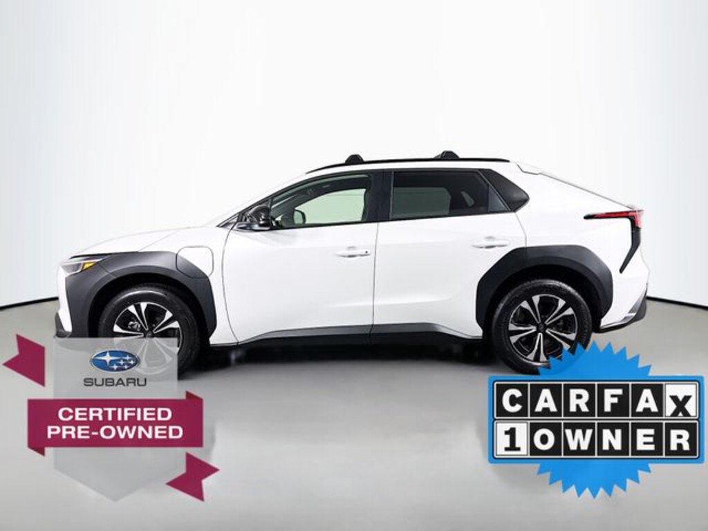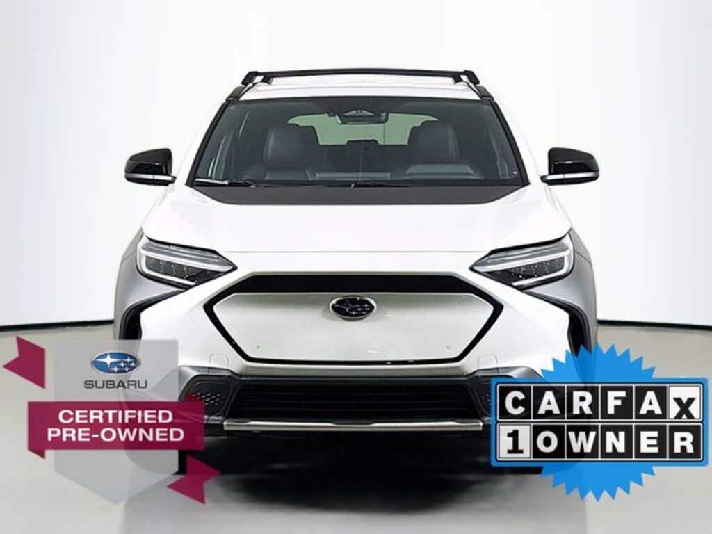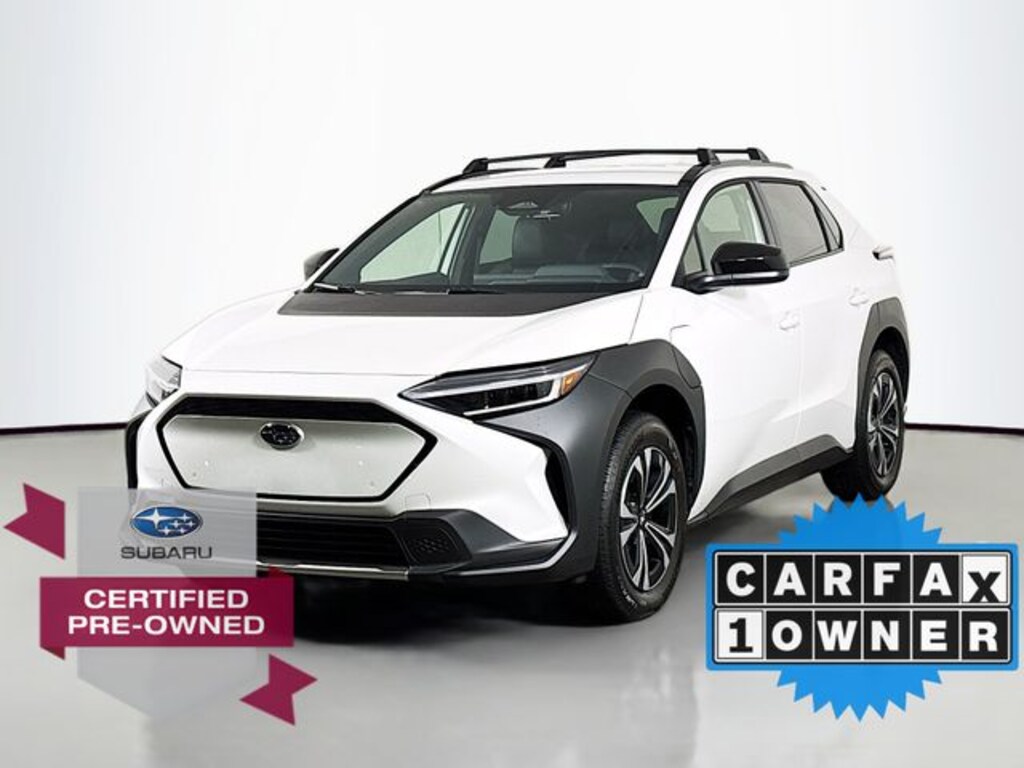 Driving this certified-pre-owned 2025 Subaru Solterra Premium in Cosmic White Pearl/Black gives you much of the appeal of a new electric SUV, including its modern styling, EV drivetrain, AWD capability and up-to-227-mile estimated range, plus all-wheel drive and a full suite of safety/driver-assist systems, but with significant value and peace-of-mind advantages. Because itâs certified, the vehicle has passed a rigorous multi-point inspection and reconditioning process, which reduces the risk of hidden problems and helps ensure it performs like new. You also benefit from extended warranty coverage, and often roadside-assistance and special financing/rate opportunities, which together lower long-term ownership costs and reduce financial risks of unexpected repairs.