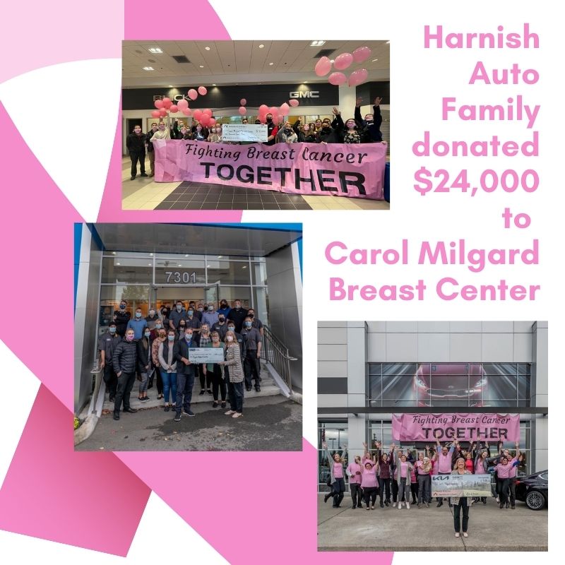 Every year as part of the Harnish Auto Family, VW of Puyallup participates in October's Breast Cancer Awareness month. As part of 2021's initiative, we donated on the customers behalf for every test drive presented a group check of $24,000 to Carol Milgard Breast Center.