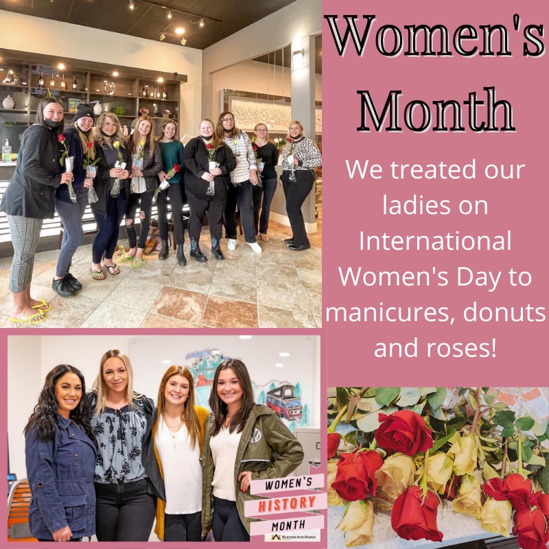 This March we celebrated Women's History Month at Harnish Auto Family. Women bring a different perspective and skillset and we wanted to really recognize the work that they do and their unique abilities that they bring to the dealership. Each day we highlighted our women in each department on our social media pages across all five of our dealerships and gave them the opportunity to share a little about themselves and what they love about working in the auto industry. We gave our ladies flowers, donuts and manicures over at a local nail salon to celebrate them on International Women's Day, March 8th. It is so important to share the value that women bring to the dealership and so we also put together a video highlighting our female employees from all five of our dealerships in all different kind of positions to demonstrate that there is always room for women and that the auto industry and Harnish Auto Family wouldn't be the same without them here. Thank you to all the ladies for the hard work that they do - we wouldn't be us without you!