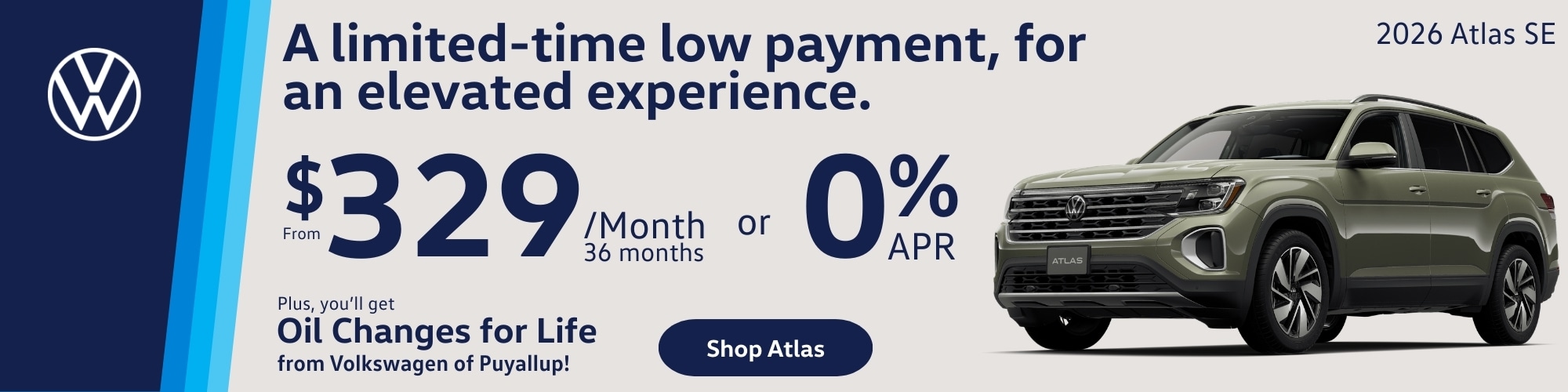 *Based on MSRP of $43,199.00 (including destination charges) for a 2026 Volkswagen Atlas SE Vin #1V2LN2CA9TC544996 excluding title, tax, options, and negotiable documentary service fee up to $200. 36 monthly payments of $329.47 total $11,860.92 plus licensing. $4,999 due at lease signing plus tax, title and licensing. Acquisition fee of $699 included in Lease Agreement. Purchase option at lease end for $28,943.33 after capitalized cost of $40,242.00. Includes $1,500 rebates. Limited to 10,000 miles per year. At lease end lessees responsible for $0.20/mile over 30,000 miles and excessive wear and tear. Dealer sets actual prices. Lessee responsible for insurance. Closed-end lease offered to highly qualified lessees on approved credit by Volkswagen Credit, Inc. Supplies limited. U.S. cars only. Additional charges may apply at lease end. Offer Expires: 4.30.26