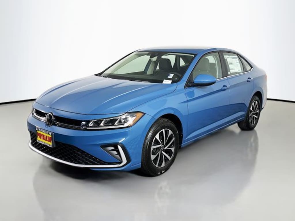 Monterey Blue 2025 Volkswagen Jetta 1.5T S FWD 8-Speed Automatic with Tiptronic 1.5L I-4 DI DOHC Turbocharged Black Cloth.