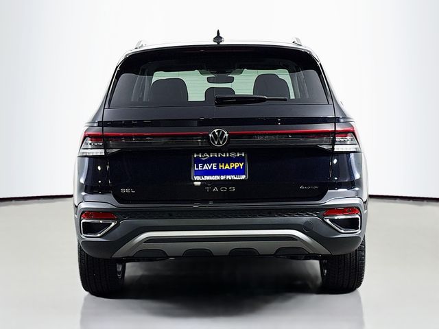Deep Black Pearl 2025 Volkswagen Taos 1.5T SEL AWD 8-Speed Automatic with Tiptronic 1.5L I4 Turbocharged DOHC 16V LEV3-SULEV30 174hp ALLOY WHEELS, AUDIO PACKAGE, BACKUP CAMERA, CLIMATE PACKAGE, HEAT PACKAGE.