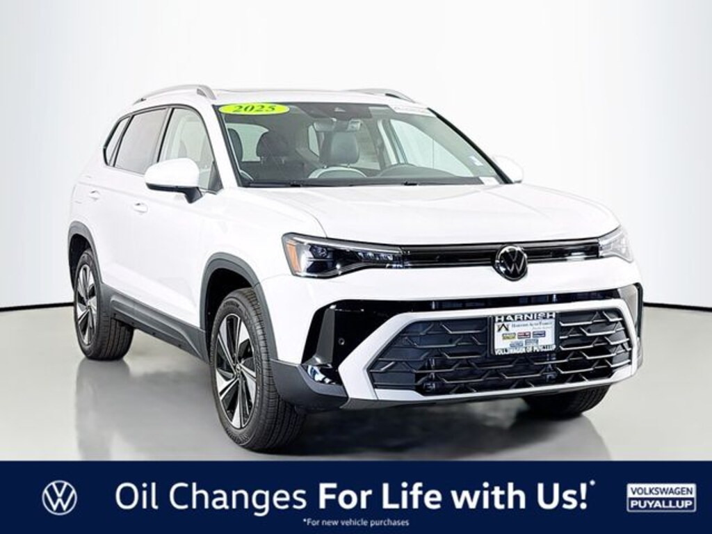 Pure White 2025 Volkswagen Taos 1.5T SE AWD 8-Speed Automatic with Tiptronic 1.5L I4 Turbocharged DOHC 16V LEV3-SULEV30 174hp