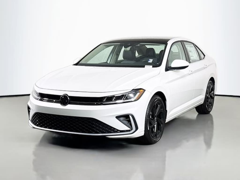Opal White Pearl 2026 Volkswagen Jetta 1.5T SE FWD 8-Speed Automatic with Tiptronic 1.5L I-4 DI DOHC Turbocharged Grigio & Black Artificial Leather.