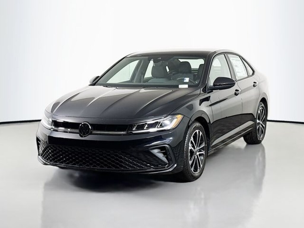 Deep Black Pearl 2026 Volkswagen Jetta 1.5T Sport FWD 8-Speed Automatic with Tiptronic 1.5L I-4 DI DOHC Turbocharged ALLOY WHEELS, AUDIO PACKAGE, BACKUP CAMERA, CLIMATE PACKAGE, HEAT PACKAGE, Black Cloth.