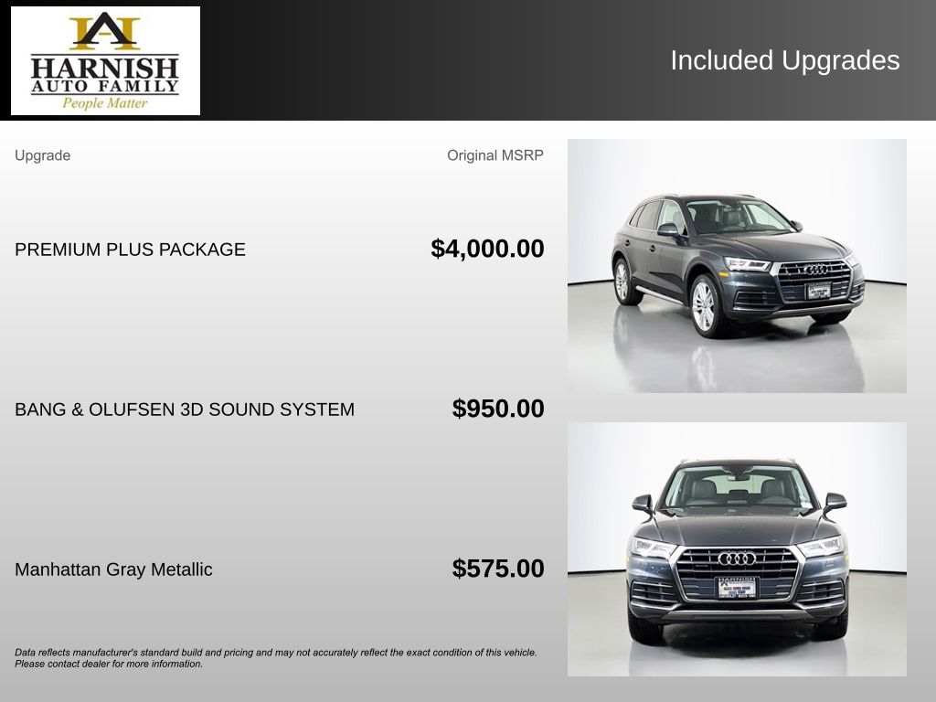 Experience the Difference at Chevrolet of Puyallup. As one of the top dealers in the NW, we make it easy. With Care-Free Maintenance , No Worry Warranties, Accessory Discounts and the best Customer Rewards Program in the NW. 2018 Audi Q5 2.0T Premium Plus {Exterior Color}