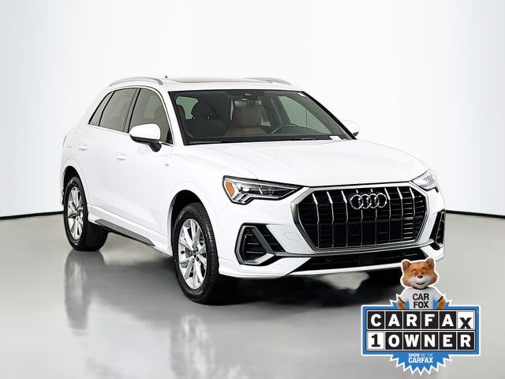 Audi Q3 Premium Plus S Line quattro 4D Sport Utility 2.0L 4-Cylinder TFSI quattro ADAPTIVE CRUISE CONTROL, ALLOY WHEELS, ALL-WHEEL DRIVE, APPLE CARPLAY/ ANDRIOD AUTO, AUDIO PACKAGE, BACKUP CAMERA, BLIND SPOT MONITORING, CLIMATE PACKAGE, HEAT PACKAGE, HEATED SEATS, KEYLESS ENTRY, LEATHER SEATS, NAVIGATION SYSTEM, POWER MIRROR PACKAGE, PREMIUM SOUND PACKAGE, REMOTE START, SAFTEY PACKAGE, SECURITY PACKAGE, MOONROOF/SUNROOF, TECHNOLOGY PACKAGE, LED HEADLIGHTS, PARKING SENSORS / PARK ASSIST, PREMIUM PACKAGE, Q3 Premium Plus S Line quattro, 4D Sport Utility, 2.0L 4-Cylinder TFSI, 8-Speed Automatic with Tiptronic, quattro, Glacier White Metallic, Okapi Brown w/Leather Seating Surfaces.