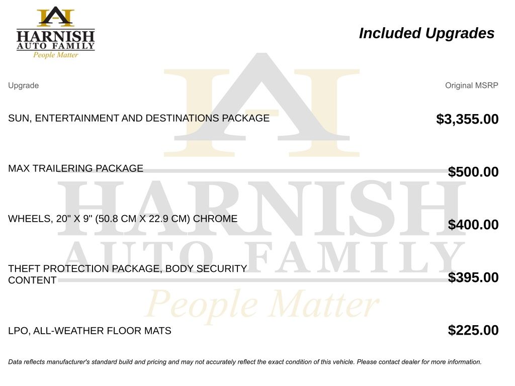 While every reasonable effort is made to ensure the accuracy of this data, we are not responsible for any errors or omissions contained on these pages. Please verify any information in question with a dealership sales representative. Tax, title, license and dealer fees (unless itemized above) are extra. Not available with special finance or lease offers. See dealer for details, restrictions and availability. A documentary service fee in an amount up to $200 may be added to the sale price or capitalized cost. The Documentary Service Fee is a negotiable fee.