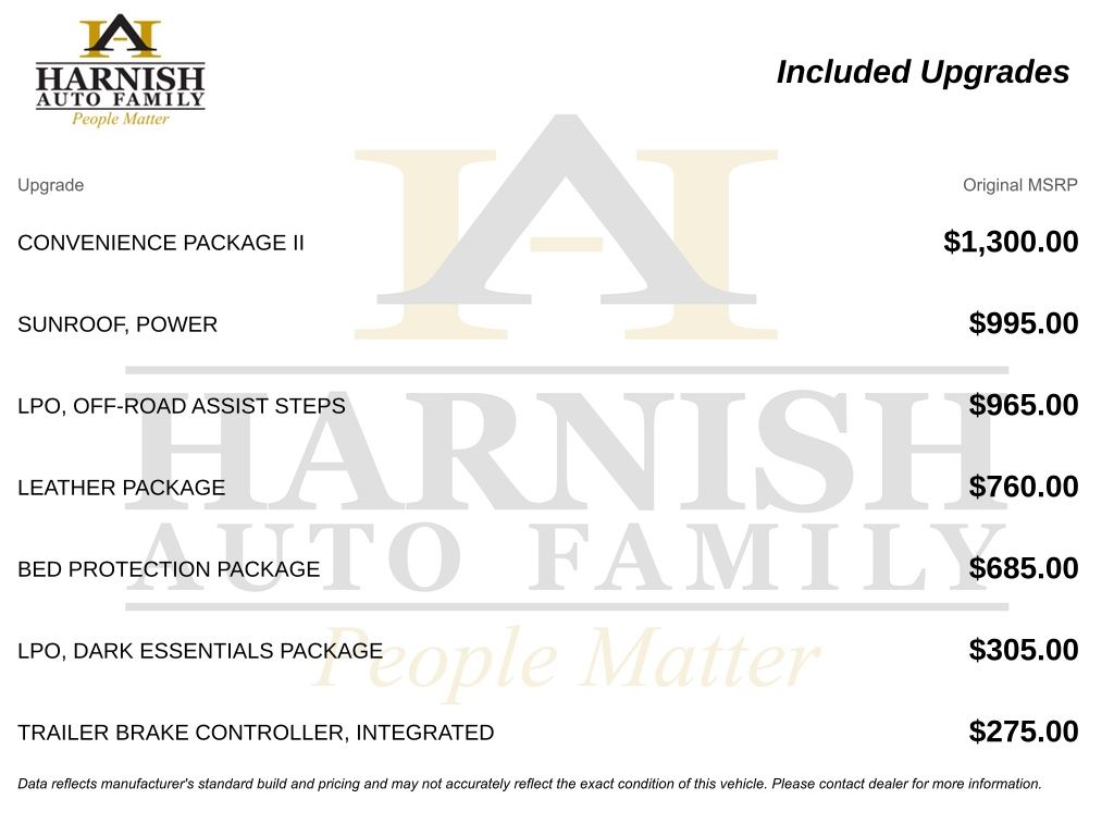 While every reasonable effort is made to ensure the accuracy of this data, we are not responsible for any errors or omissions contained on these pages. Please verify any information in question with a dealership sales representative. Tax, title, license and dealer fees (unless itemized above) are extra. Not available with special finance or lease offers. See dealer for details, restrictions and availability. A documentary service fee in an amount up to $200 may be added to the sale price or capitalized cost. The Documentary Service Fee is a negotiable fee.
