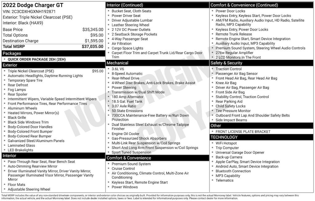 While every reasonable effort is made to ensure the accuracy of this data, we are not responsible for any errors or omissions contained on these pages. Please verify any information in question with a dealership sales representative. Tax, title, license and dealer fees (unless itemized above) are extra. Not available with special finance or lease offers. See dealer for details, restrictions and availability. A documentary service fee in an amount up to $200 may be added to the sale price or capitalized cost. The Documentary Service Fee is a negotiable fee.