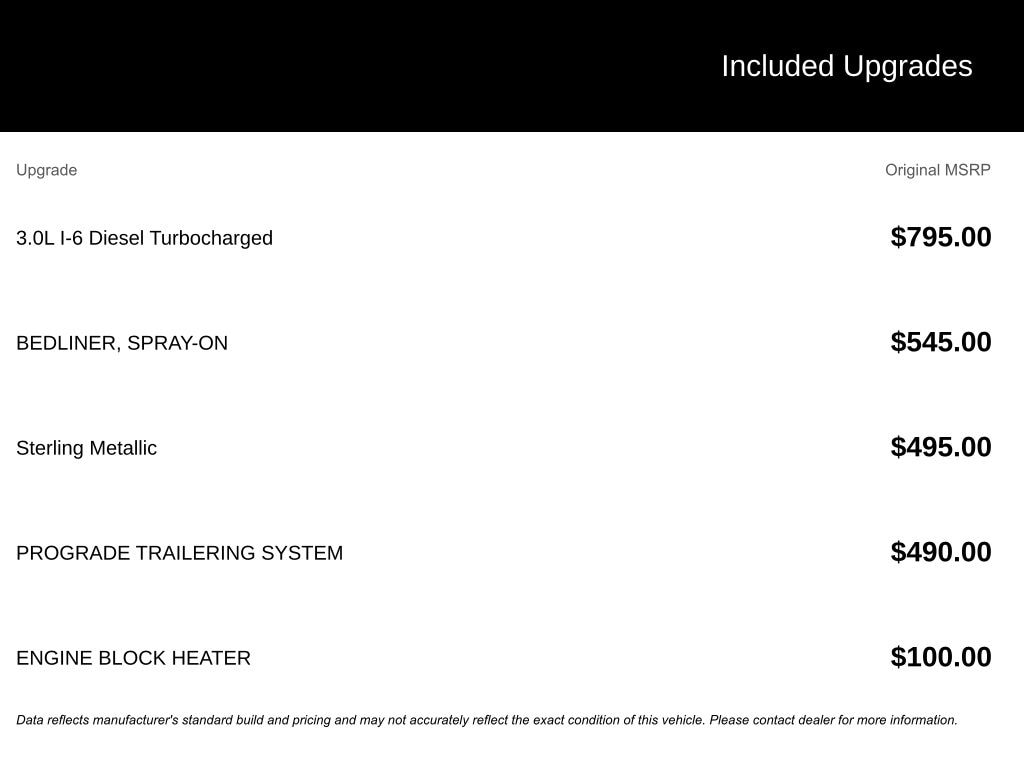 This Sierra 1500 SLT is equipped with sought-after factory options that add real-world capability and long-term value, including the Duramax 3.0L turbo-diesel engine, ProGrade Trailering System, spray-on bedliner, and Sterling Metallic exterior finish. These upgrades enhance towing confidence, durability, and resale appeal without unnecessary add-ons.
