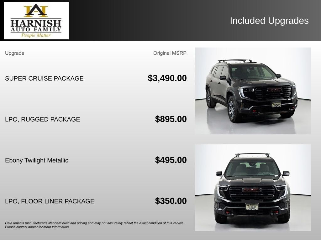 Experience the Difference at Chevrolet of Puyallup. As one of the top dealers in the NW, we make it easy. With Care-Free Maintenance , No Worry Warranties, Accessory Discounts and the best Customer Rewards Program in the NW. 2025 GMC Acadia AT4 {Exterior Color}