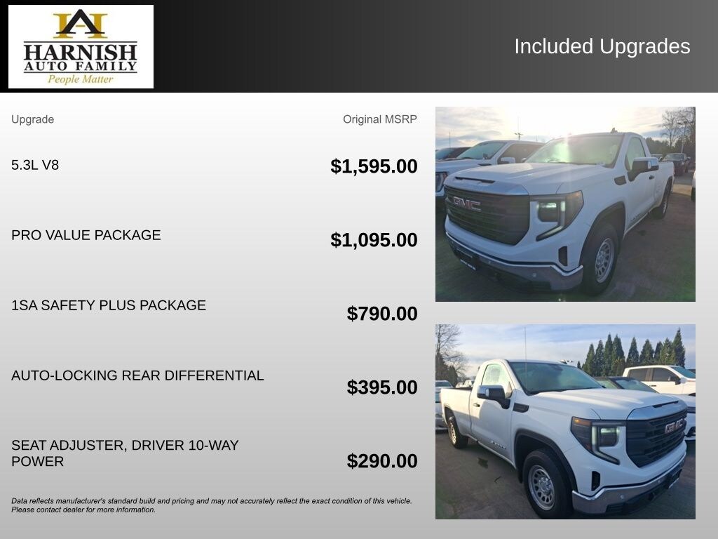 Experience the Difference at Chevrolet of Puyallup. As one of the top dealers in the NW, we make it easy. With Care-Free Maintenance , No Worry Warranties, Accessory Discounts and the best Customer Rewards Program in the NW. 2025 GMC Sierra 1500 Pro {Exterior Color}