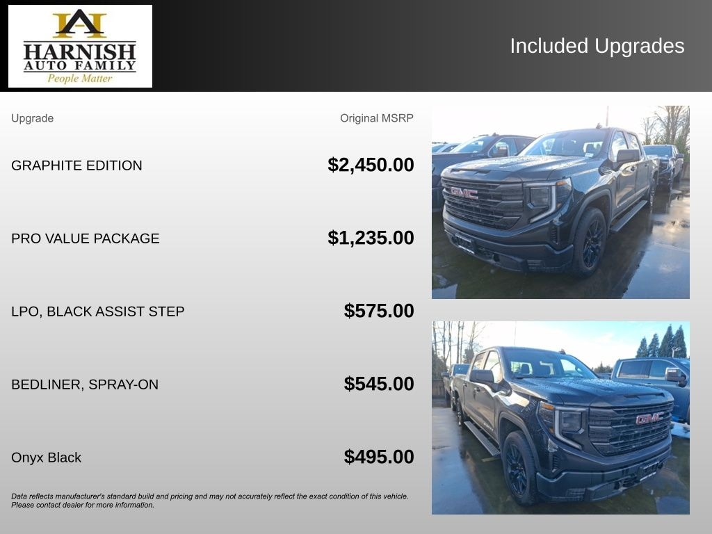 Experience the Difference at Chevrolet of Puyallup. As one of the top dealers in the NW, we make it easy. With Care-Free Maintenance , No Worry Warranties, Accessory Discounts and the best Customer Rewards Program in the NW. 2025 GMC Sierra 1500 Pro {Exterior Color}