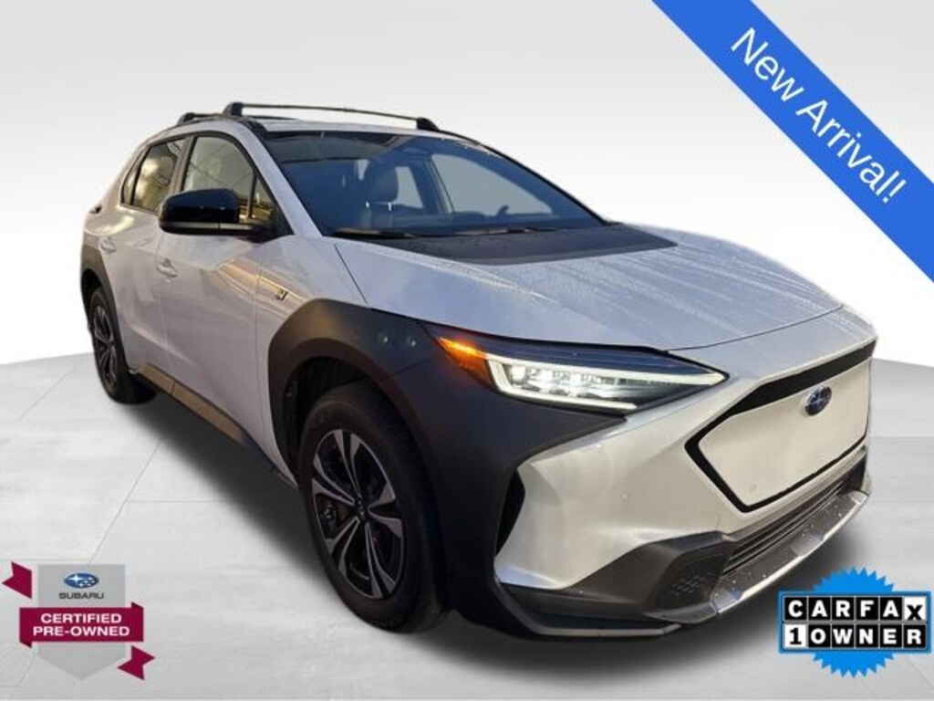 Driving this certified-pre-owned 2025 Subaru Solterra Premium in Cosmic White Pearl/Black gives you much of the appeal of a new electric SUV, including its modern styling, EV drivetrain, AWD capability and up-to-227-mile estimated range, plus all-wheel drive and a full suite of safety/driver-assist systems, but with significant value and peace-of-mind advantages. Because itâs certified, the vehicle has passed a rigorous multi-point inspection and reconditioning process, which reduces the risk of hidden problems and helps ensure it performs like new. You also benefit from extended warranty coverage, and often roadside-assistance and special financing/rate opportunities, which together lower long-term ownership costs and reduce financial risks of unexpected repairs.