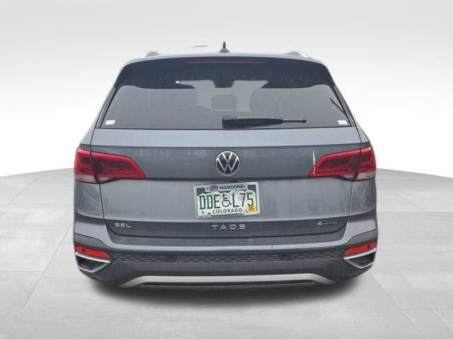 Volkswagen Taos 1.5T SEL 4D Sport Utility 1.5L I4 Turbocharged DOHC 16V LEV3-SULEV30 158hp AWD ALLOY WHEELS, AUDIO PACKAGE, BACKUP CAMERA, CLIMATE PACKAGE, HEAT PACKAGE, Taos 1.5T SEL, 4D Sport Utility, 1.5L I4 Turbocharged DOHC 16V LEV3-SULEV30 158hp, 7-Speed DSG Automatic with Tiptronic, AWD, Platinum Gray Metallic, Gray/Black w/Perforated Vienna Leather Seating Surfaces.